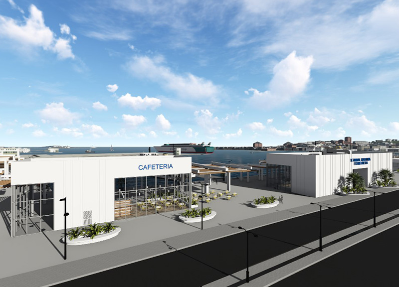 Structure of the new terminal surrounded by perimeter walls, having to be executed in several positions due to its complex assembly. The floors are made with falsework due to their heights and thicknesses. On the roof, due to its large spans, a post-tensioned slab is made. A fair concrete walkway for passenger access starts from the terminal, also made with falsework.